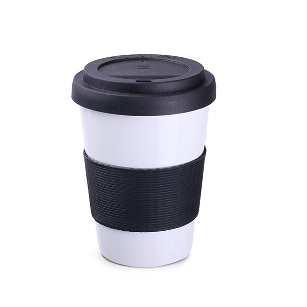 Una tazza di moda per gli amanti dello stile di vita attivo. Il coperchio evita le fuoriuscite accidentali e una banda in silicone permette 45 mm una presa sicura. Coperchi e bande (45 mm) sono disponibili in 8 colori: bianco, arancione, rosso, verde, blu navy, marrone e nero.