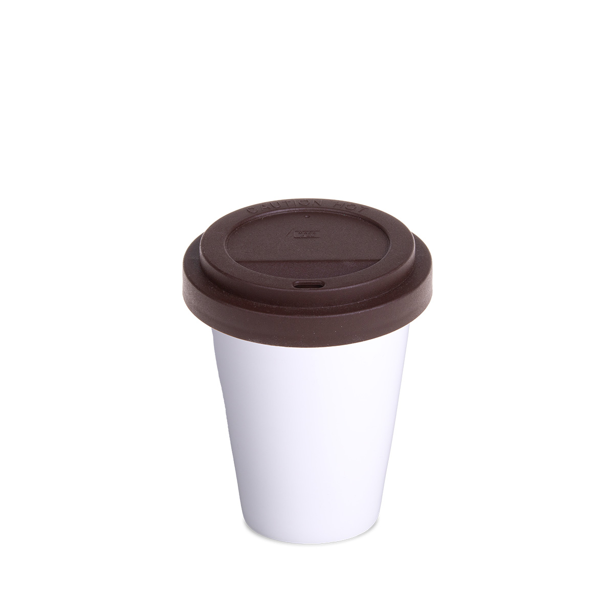 Pratica tazza in porcellana con coperchio in polimero che protegge dal versamento accidentale della bevanda. Grazie alla rara struttura interna a doppia parete in porcellana, questa tazza è caratterizzata da un elevato livello di isolamento termico. Il corpo della tazza è disponibile nei colori bianco e nero satinato. Il coperchio è disponibile nei seguenti colori: bianco, arancione 021C, grigio Cool Gray 7, blu navy 294C, marrone 4695C, nero, rosa 4064C, blu 2144C, eucalipto 5493C, sabbia del deserto 2310C.